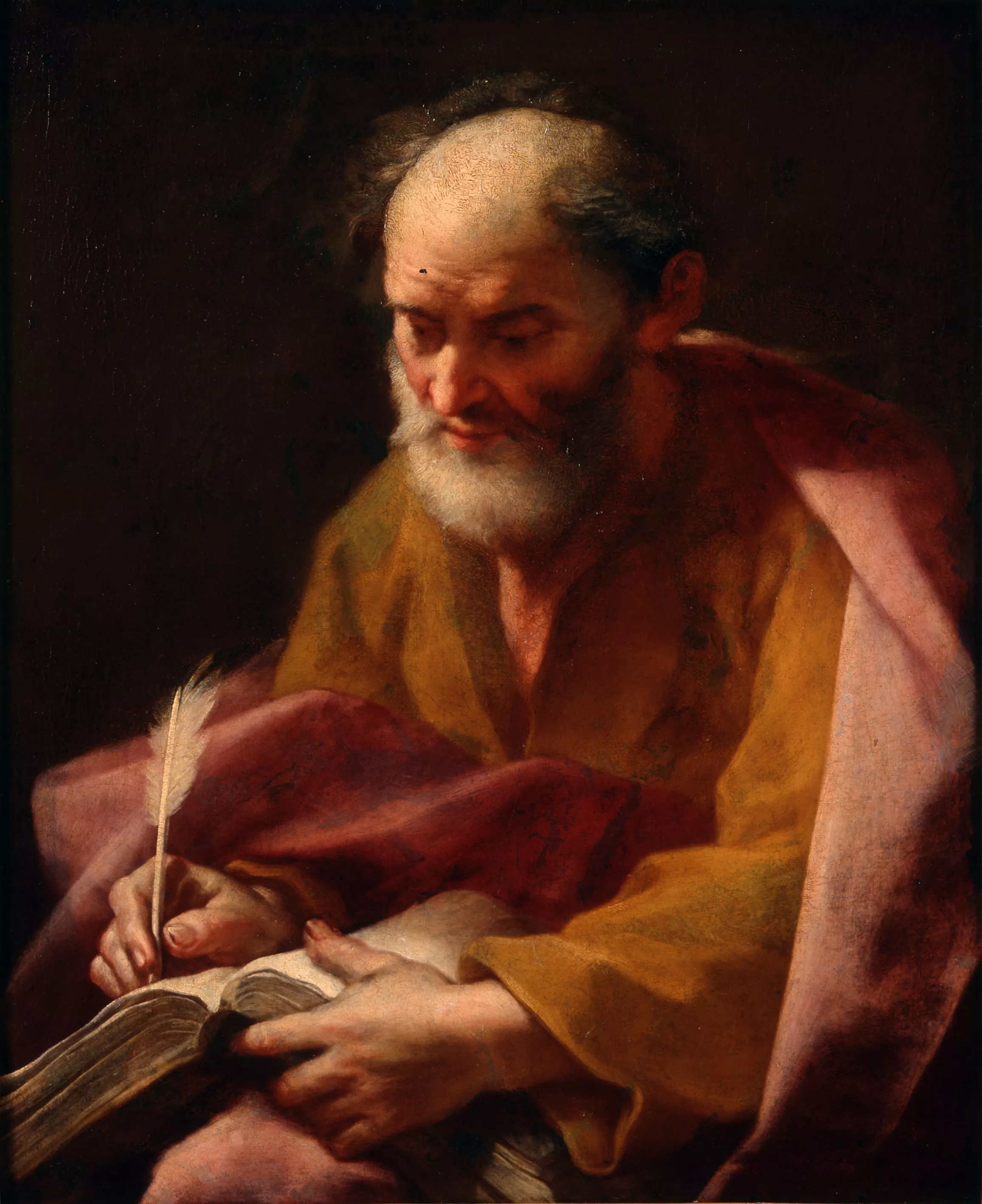 Un apôtre tourné vers la gauche, livre sur les genoux