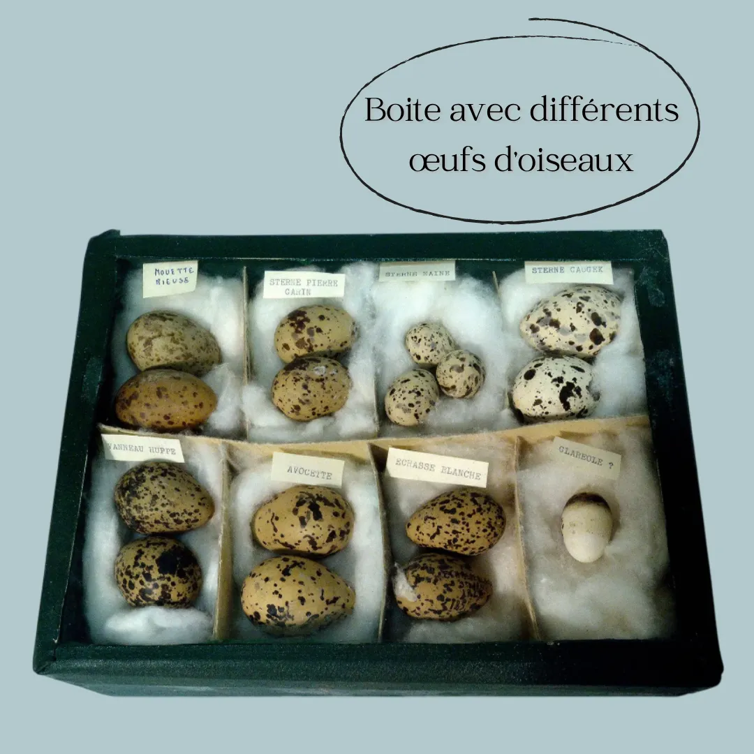 Au muséum Requien, vous trouverez également nombre d’œufs d’oiseaux marins, et nous vous proposons d’en observer trois sur cette photo. Le premier est celui de l’échasse blanche, une adepte des lagunes côtières. Comme son nom l’indique, elle appartient à la famille des échassiers et est noire et blanche. Vous pourrez aussi croiser l’avocette, reconnaissable par son long bec courbé vers le haut, elle niche sur les côtes atlantique et méditerranéenne. Enfin, la sterne naine, qui est la plus petite des sternes européennes, vient en Camargue pendant sa période de nidification car elle installe son nid dans des dunes ou sur les bords de lagunes.