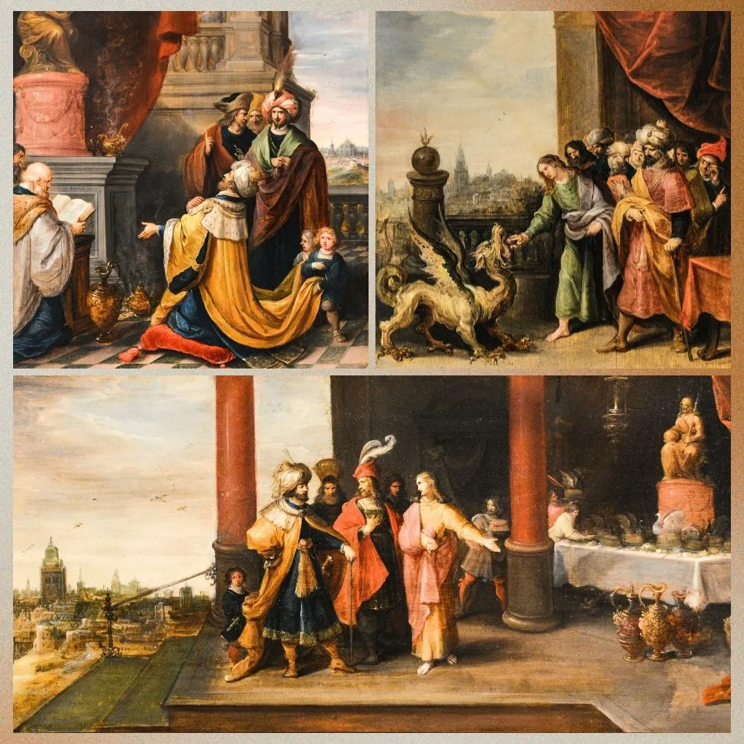 Ses douze panneaux peints, au raffinement typique de l’école anversoise, racontent plusieurs épisodes du Livre de Prophète Daniel :